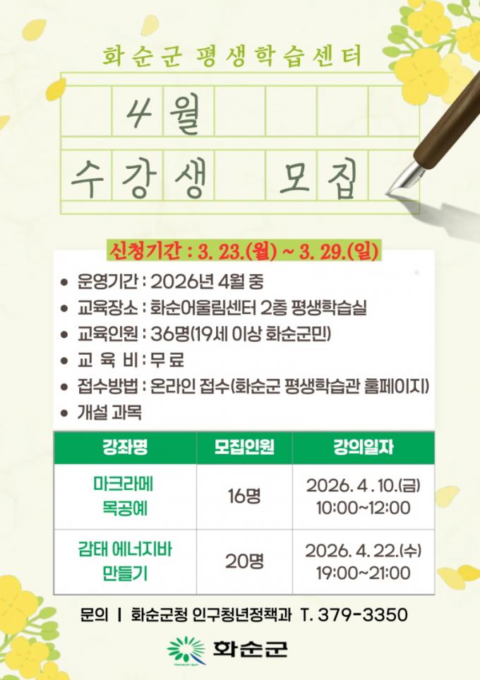 ¼ö° ½ÅûÀº 3¿ù 23ÀϺÎÅÍ 29ÀϱîÁö ȼø±º Æò»ýÇнÀ°ü ȨÆäÀÌÁö¸¦ ÅëÇØ ¿Â¶óÀÎÀ¸·Î Á¢¼öÇÒ ¼ö ÀÖ´Ù. ¼±Âø¼øÀ¸·Î ´ë»óÀÚ¸¦ È®Á¤ÇØ °³º° ÅëÁöÇÒ ¿¹Á¤À̸ç, ´ë±âÀÚ´Â °á¿ø ¹ß»ý ½Ã º°µµ·Î ¾È³»µÈ´Ù.