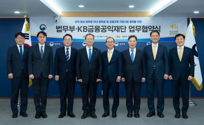 ¹ý¹«ºÎ(Àå°ü Á¤¼ºÈ£)´Â KB±ÝÀ¶°øÀÍÀç´Ü*°ú ¡®¼øÁ÷․°ø»ó °ø¹«¿ø ÀÚ³àÀÇ ÀåÇÐ±Ý ¹× ¸ÂÃãÇü ±ÝÀ¶±³À° Áö¿øÀ» À§ÇÑ ¾÷¹«Çù¾à(MOU)¡¯À» ü°áÇß´Ù°í ¹àÇû´Ù.