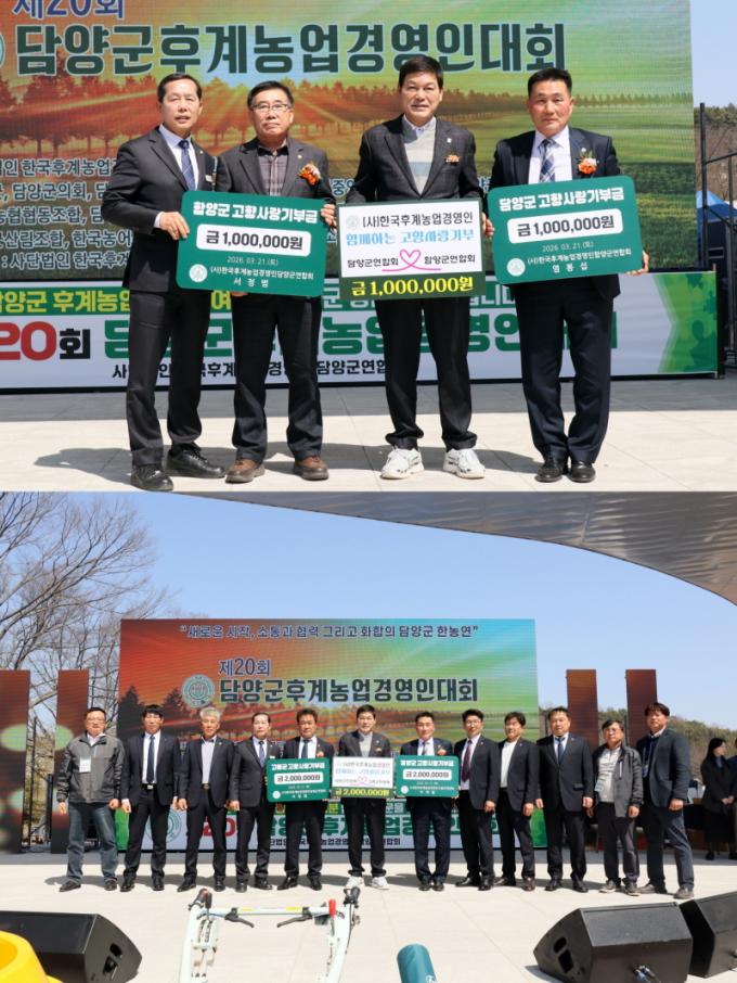 À̹ø »óÈ£ ±âºÎ¿¡¼­ ´ã¾ç±º°ú °íÈﱺ¿¬ÇÕȸ´Â °¢ 200¸¸ ¿øÀ», ´ã¾ç±º°ú ÇԾ籺 ¿¬ÇÕȸ´Â °¢ 100¸¸ ¿øÀ» ±³Â÷ ±âºÎÇÏ¸ç ¼­·ÎÀÇ Áö¿ª ¹ßÀüÀ» ÀÀ¿øÇß´Ù.