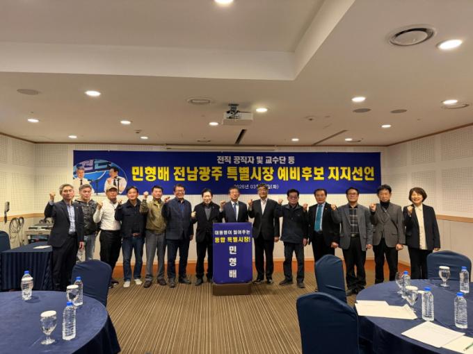 ¹ÎÇü¹è °æ¼±»ç¹«¼Ò ¹Î½ÉÄ·ÇÁ´Â ¡°Àü³²°ú ±¤ÁÖÁö¿ª ÀüÁ÷ °øÁ÷ÀÚ¿Í ±³¼ö 125ÀÎÀÌ Áö³ 24ÀÏ ±¤ÁÖ È¦¸®µ¥ÀÌÀÎÈ£ÅÚ ÄÁº¥¼ÇȦ¿¡¼ ¹ÎÇü¹è Àü³²․±¤ÁÖÆ¯º°½ÃÀå ¿¹ºñÈĺ¸ ÁöÁö¸¦ ¼±¾ðÇß´Ù¡±°í 26ÀÏ ¹àÇû´Ù.