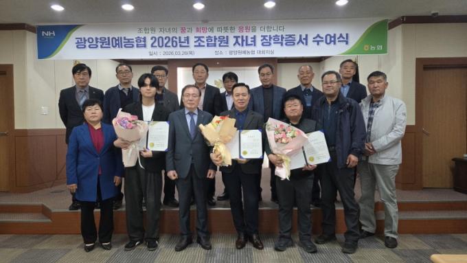 À̹ø ¼ö¿©½ÄÀº 3¿ù 26ÀÏ(¸ñ) ±¤¾ç¿ø¿¹³óÇù º»Á¡ ´ëȸÀǽǿ¡¼ ¿·ÈÀ¸¸ç, Á¶ÇÕ¿ø ´ëÇлý ÀÚ³à °¡¿îµ¥ ¼ºÀûÀÌ ¿ì¼öÇϰí ŸÀÇ ¸ð¹üÀÌ µÇ´Â Çлý 4¸íÀÌ ÀåÇлýÀ¸·Î ¼±¹ßµÅ ÃÑ 800¸¸¿øÀÇ ÀåÇбݰú ÇÔ²² ÀåÇÐÁõ¼°¡ Àü´ÞµÆ´Ù.