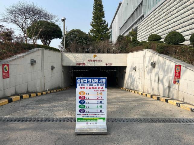 À̹ø ½Â¿ëÂ÷ 5ºÎÁ¦´Â Â÷·®¹øÈ£ÆÇ ³¡ÀÚ¸® ¹øÈ£¿¡ µû¶ó ¿äÀϺ° ¿îÇàÀ» Á¦ÇÑÇÏ´Â ¹æ½ÄÀ¸·Î ¿î¿µµÈ´Ù. ¿ù¿äÀÏ 1¡¤6¹ø, È¿äÀÏ 2¡¤7¹ø, ¼ö¿äÀÏ 3¡¤8¹ø, ¸ñ¿äÀÏ 4¡¤9¹ø, ±Ý¿äÀÏ 5¡¤0¹ø Â÷·®ÀÌ ´ë»óÀ̸ç ÁÖ¸»°ú °øÈÞÀÏÀº Á¦¿ÜµÈ´Ù.