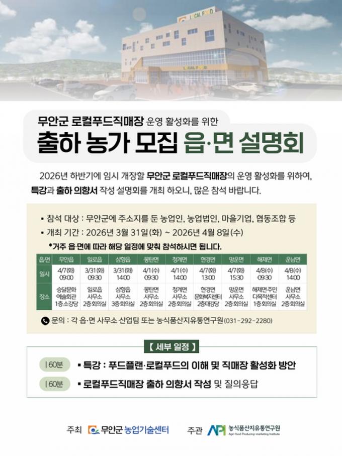 À̹ø ¼³¸íȸ´Â ±âÁ¸ Âü¿©³ó°¡¿Í ½Å±Ô Âü¿©¸¦ Èñ¸ÁÇÏ´Â ³ó¾÷ÀÎÀ» ´ë»óÀ¸·Î ÁøÇàµÇ¸ç ¡ã¸À¶ã¹«¾È ¸Ô°Å¸® ÅëÇÕÇ÷§Æû ±¸Ãà»ç¾÷ ¼³¸í ¡ã·ÎÄÃǪµå Á÷¸ÅÀå ¿î¿µ ÀýÂ÷ ¾È³» ¡ãÃâÇÏ ÀÇÇâ Á¶»ç ¹× ÇöÀå »ó´ã µîÀ¸·Î ±¸¼ºµÈ´Ù.
