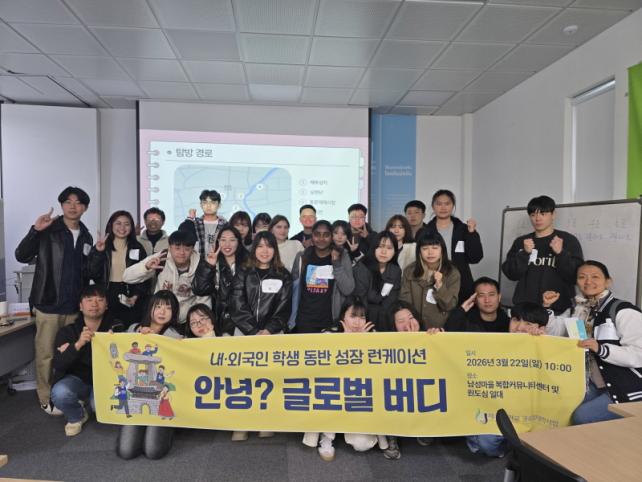 À̹ø ÇÁ·Î±×·¥Àº ³»±¹ÀÎ Çлý°ú ¿Ü±¹ÀÎ À¯ÇлýÀ» 1:1·Î ¸ÅÄªÇØ ¾ð¾î ¹× ¹®È ±³·ù¸¦ Ȱ¼ºÈÇϰí, Áö¿ª»çȸ ÀûÀÀ·ÂÀ» ³ôÀ̱â À§ÇØ ±âȹµÆ´Ù. Âü°¡ÀÚµéÀº ³²¼º¸¶À» Ä¿¹Â´ÏƼ¼¾ÅÍ¿¡¼ÀÇ ¿À¸®¿£Å×À̼ÇÀ» ½ÃÀÛÀ¸·Î µ¿¹®½ÃÀå ¹Ì½Ä Å½¹æ, ¿øµµ½É ¿ª»ç¡¤¹®È ¹Ì¼Ç ¼öÇà µî Á¦ÁÖ Áö¿ª ÀÚ»êÀ» Á÷Á¢ üÇèÇÏ¸ç ±Û·Î¹ú ¼ÒÅë ¿ª·®À» °ÈÇÏ´Â ½Ã°£À» °¡Á³´Ù.