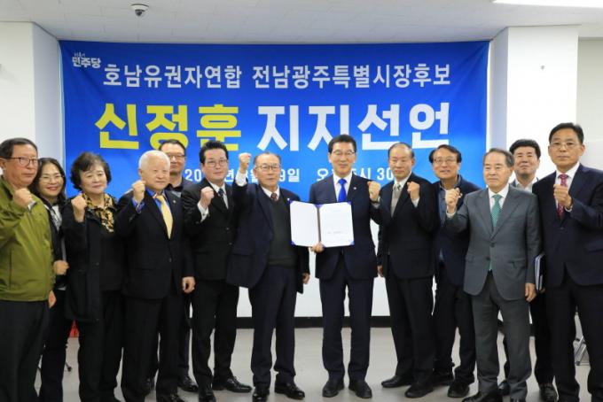 È£³²À¯±ÇÀÚ¿¬ÇÕ(»óÀÓ´ëÇ¥ À̰üÇü)Àº 29ÀÏ ½ÅÁ¤ÈÆ °æ¼±Áغñ ±¤Áֻ繫½Ç¿¡¼ ¡®Àü³²±¤ÁÖÅëÇÕÆ¯º°½ÃÀå Èĺ¸ ÁöÁö ¼±¾ð½Ä¡¯À» °®°í, ÃÊ´ë ÅëÇÕÆ¯º°½ÃÀå È帷Π½ÅÁ¤ÈÆÀ» ÁöÁöÇÑ´Ù°í ¼±¾ðÇß´Ù.