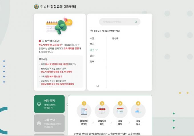 ½Åû ¹æ¹ýÀº ±³À° ±â°£ ³» ÄÄÇ»Åͳª ½º¸¶Æ®ÆùÀ» ÀÌ¿ëÇØ ¹Î¹æÀ§ ÁýÇÕ±³À° ¿¹¾à¼¾ÅÍ(http://kreserve.kr) ¶Ç´Â ¹Î¹æÀ§»çÀ̹ö±³À°¼¾ÅÍ ´©¸®Áý(www.kcmes.kr)¿¡ Á¢¼ÓÇÑ µÚ º»ÀÎÀÎÁõÀ» °ÅÃÄ 24½Ã°£ ¾ðÁ¦µç ¼ö°ÇÒ ¼ö ÀÖ´Ù.