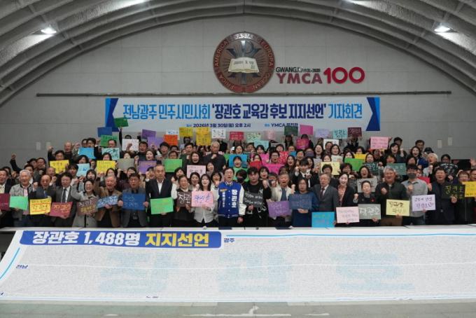 ¡®Àü³²±¤ÁÖ ¹ÎÁֽùλçȸ Àå°üÈ£ Èĺ¸ ÁöÁö ÃßÁøÀ§¿øÈ¸(ÀÌÇÏ ÃßÁøÀ§)¡¯´Â 3¿ù 30ÀÏ(¿ù) ¿ÀÈÄ 2½Ã ±¤ÁÖ YMCA ¹«Áø°ü¿¡¼ ±âÀÚȸ°ßÀ» ¿°í, ½Ã¹Î 1,488¸íÀÌ µ¿ÂüÇÑ ÁöÁö ¼±¾ð¹®À» ¹ßÇ¥Çß´Ù. À̹ø ¼±¾ðÀº Áö³ 19ÀÏ ¹ÎÁÖÁøº¸±³À°°¨ Àü³²µµ¹Î°øÃµÀ§¿øÈ¸ÀÇ Ãß´ë °áÁ¤ ÀÌÈÄ, Àü³²¡¤±¤ÁÖ ÅëÇÕ±³À° ½Ã´ë¸¦ ÁغñÇÏ´Â ½Ã¹Î»çȸÀÇ °·ÂÇÑ ÀÇÁö¸¦ °áÁýÇÑ °ÍÀÌ´Ù.