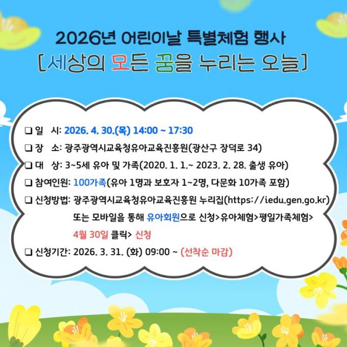 ±¤ÁÖ±¤¿ª½Ã±³À°Ã»À¯¾Æ±³À°ÁøÈï¿ø, ¾î¸°À̳¯ Ưº° °¡Á·Ã¼Çè ¿î¿µ