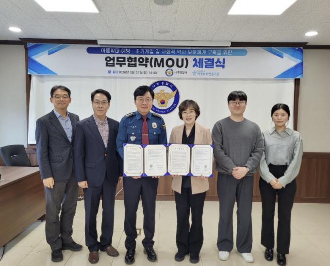 (»çÁøÁ¦°ø=Àü³²ÁߺαǾƵ¿º¸È£Àü¹®±â°ü)³ªÁÖ°æÂû¼­(¼­Àå ±Ç¼®Áø)¿Í Àü³²ÁߺαǾƵ¿º¸È£Àü¹®±â°ü(°üÀå ±è¼ö°æ)Àº ¾Æµ¿ ±ÇÀÍ ÁõÁø°ú ¹üÁËÇÇÇØÀÚ µî º¸È£°¡ ÇÊ¿äÇÑ »çȸÀû ¾àÀÚ¸¦ À§ÇÑ ÅëÇÕÀû Áö¿øÃ¼°è ±¸ÃàÀ» À§ÇØ ¾÷¹«Çù¾à(MOU)À» ü°áÇß´Ù°í 01ÀÏ(¼ö), ¹àÇû´Ù. »çÁøÀº ³ªÁÖ°æÂû¼­¿Í Çù¾à½ÄÀ» ÁøÇàÇÏ´Â ¸ð½À.