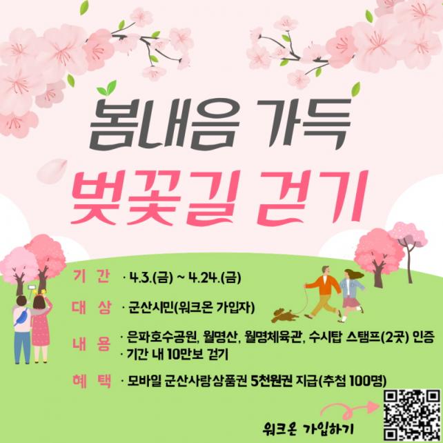 À̹ø 縰Áö´Â ¸ð¹ÙÀÏ ¾Û ¡®¿öÅ©¿Â(WalkOn)¡¯À» Ȱ¿ëÇØ ±º»ê½Ã¹Î ´©±¸³ª Âü¿©ÇÒ ¼ö ÀÖ´Ù. Âü¿© ¹æ¹ýÀº ÀºÆÄÈ£¼ö°ø¿ø, ¿ù¸í»ê, ¿ù¸íüÀ°°ü, ¼ö½Ãž µî ±º»êÀÇ ÁÖ¿ä º¢²É ¸í¼Ò ÄÚ½º Áß 2°÷ ÀÌ»óÀÇ ½ºÅÆÇÁ¸¦ ÀÎÁõÇϰí, ±â°£ ³» ÃÑ 10¸¸ º¸ °È±â¸¦ ´Þ¼ºÇÏ¸é µÈ´Ù.