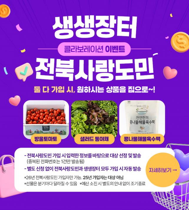 2ÀÏ À̹ø Çà»ç´Â µÎ Ç÷§ÆûÀ» ÇÔ²² °¡ÀÔÇÒ °æ¿ì 1¸¸ ¿ø »ó´çÀÇ ³óƯ»ê¹°À» ¹è¼Ûºñ Æ÷ÇÔÇØ Á¦°øÇÏ´Â »ç¾÷À¸·Î, º°µµ ½Åû ¾øÀÌ °¡ÀÔ Á¤º¸¸¦ ±â¹ÝÀ¸·Î ´ë»óÀÚ¸¦ ÀÚµ¿ ¼±Á¤¡¤¹ß¼ÛÇÏ´Â ¹æ½ÄÀ¸·Î ¿î¿µµÈ´Ù.