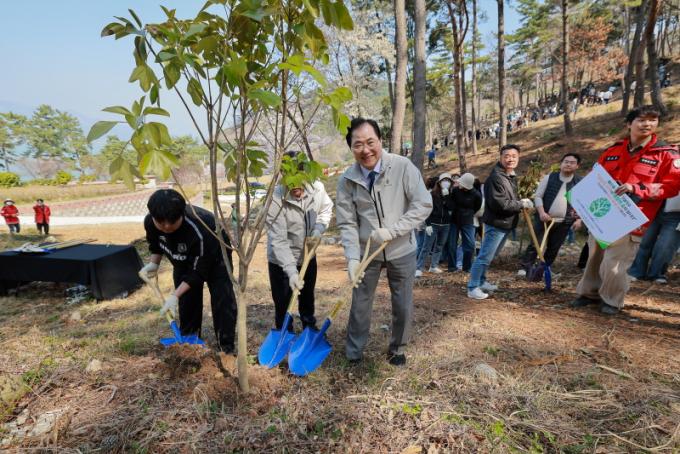 ¿Ïµµ¸¦ »ó¡ÇÏ´Â ³ª¹« ½ÄÀç·Î »ç°èÀý ³ì»ö °æ°üÀ» À¯ÁöÇϰí ź¼Ò Èí¼ö ±â´ÉÀ» °ÈÇÔÀ¸·Î½á »ê¸²ÀÇ »ó¡Àû¡¤°æ°üÀû¡¤»ýÅÂÀû °¡Ä¡¸¦ ³ôÀÏ ¼ö ÀÖÀ» °ÍÀ¸·Î ±â´ëµÈ´Ù. ½ÄÀç ÈÄ ¿ÀÈÄ¿¡´Â ¿ÏµµÇØÁ¶·ù¼¾ÅÍ ±¤Àå¿¡¼ ±º¹Î 800¿© ¸íÀ» ´ë»óÀ¸·Î Ȳĥ³ª¹«, öÂß, ¾Ö±âµ¿¹é³ª¹« µî 2,400º»ÀÇ ¹Ý·Á ³ª¹«¸¦ ³ª´³´Ù.
