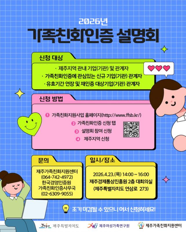 Á¦ÁÖµµ¿¡¼´Â Áö³ÇرîÁö ÃÑ 98°³ ±â¾÷(°ü)ÀÌ ¼ºÆòµî°¡Á·ºÎÀÇ °¡Á·Ä£ÈÀÎÁõÀ» ¹Þ¾ÒÀ¸¸ç, ´Ù¾çÇÑ °¡Á·Ä£È °æ¿µÈ°µ¿À» ÅëÇØ ±â¾÷ÀÇ »ý»ê¼ºÀ» ³ôÀ̰í, ±Ù·ÎÀÚÀÇ ÀÏ‧°¡Á¤¾ç¸³À» Áö¿øÇϴµ¥ ³ë·ÂÇϰí ÀÖ´Ù.