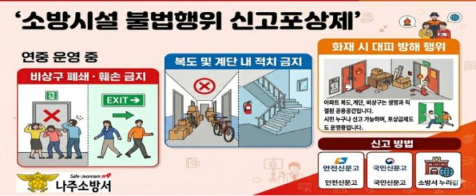 ³ªÁÖ¼Ò¹æ¼ °ü°èÀÚ´Â ¡°½Å°íÆ÷»óÁ¦¸¦ ÅëÇØ ºñ»ó±¸ Æó¼â¡¤¼Ò¹æ½Ã¼³ Â÷´Ü ÇàÀ§¸¦ ±ÙÀýÇÏ°í °¡Á·, ÀÌ¿ôÀÇ ¼ÒÁßÇÑ »ý¸íÀ» Áöų ¼ö ÀÖµµ·Ï Àû±Ø µ¿ÂüÇØ ÁÖ±æ ¹Ù¶õ´Ù¡±°í ¸»Çß´Ù.