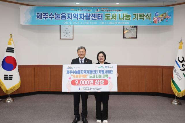 [È£³²µµ¹Î½Å¹® = ÀÓÀ±Áø ±âÀÚ] Á¦Áֽô 4¿ù 2ÀÏ(¸ñ) ½Ãû º»°ü ȸÀǽǿ¡¼­ Á¦ÁÖ¼ö´­À½Áö¿ªÀÚȰ¼¾ÅÍ¿¡ µµ¼­ 9õ¿© ±ÇÀ» Àü´ÞÇÏ´Â ¡®µµ¼­ ³ª´® ±âʽġ¯À» °³ÃÖÇß´Ù.