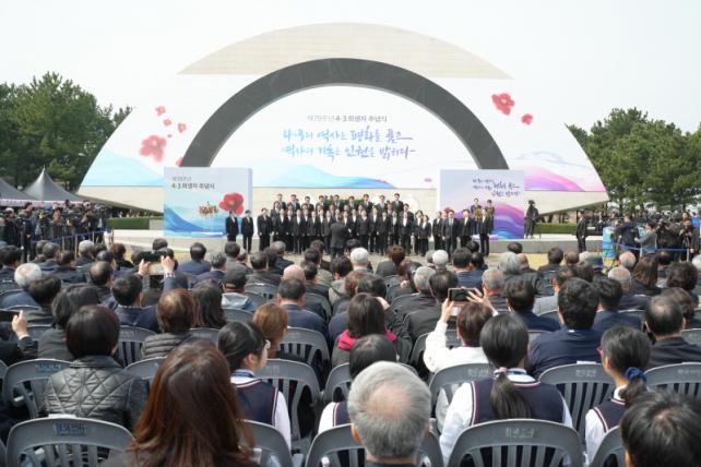 ¡®4¡¤3ÀÇ ¿ª»ç´Â Æòȸ¦ ǰ°í, ¿ª»çÀÇ ±â·ÏÀº ÀαÇÀ» ¹àÈ÷´Ù¡¯¸¦ ½½·Î°ÇÀ¸·Î ÇÑ À̳¯ Ãß³ä½Ä¿¡´Â »ýÁ¸Èñ»ýÀÚ¡¤À¯Á·, µµ¹Î°ú ±¹¹Î µî 2¸¸¿© ¸íÀÌ Âü¼®ÇØ Èñ»ýÀÚµéÀ» Ã߸ðÇß´Ù.