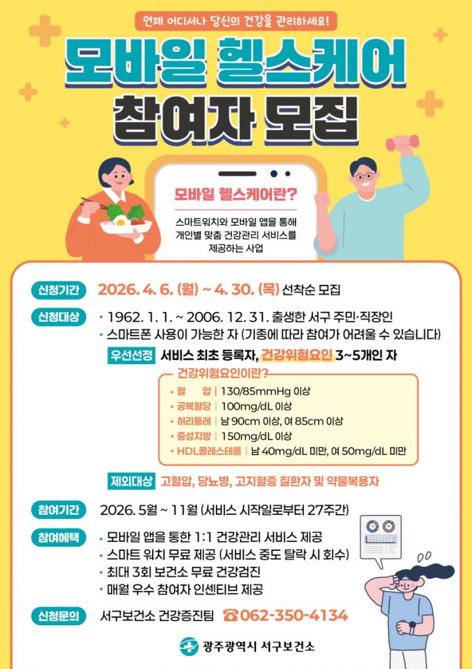 ¸ð¹ÙÀÏ ÇコÄÉ¾î »ç¾÷Àº °£È£»ç, ¿µ¾ç»ç, ¿îµ¿Àü¹®°¡ µî º¸°Ç¼Ò Àü¹®ÀηÂÀÌ ¸ÂÃãÇü °Ç°»ó´ã°ú »ýȰ½À°ü °³¼± ¼ºñ½º¸¦ Á¦°øÇÏ´Â ÇÁ·Î±×·¥ÀÌ´Ù. ¼±¸´Â Âü¿©ÀÚ¿¡°Ô ½º¸¶Æ®¿öÄ¡¸¦ ¹«·á·Î Á¦°øÇÏ°í ½º¸¶Æ®Æù ¾Û°ú ¿¬µ¿ÇØ 5¿ùºÎÅÍ 11¿ù±îÁö °Ç°°ü¸® ¼ºñ½º¸¦ Áö¿øÇÑ´Ù.