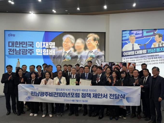 [È£³²µµ¹Î½Å¹® = ÀÓÀ±Áø ±âÀÚ] ¡®Àü³²±¤ÁÖºñÀü100³âÆ÷·³¡¯Àº Áö³­ 7ÀÏ ´õºÒ¾î¹ÎÁÖ´ç Àü³²±¤ÁÖÅëÇÕÆ¯º°½ÃÀå °æ¼± Èĺ¸ÀÎ ¹ÎÇü¹è ±¹È¸ÀÇ¿ø(±¤ÁÖ ±¤»ê±¸À»)¿¡°Ô Á¤Ã¥ Á¦¾È¼­¸¦ °ø½Ä Àü´ÞÇß´Ù°í 8ÀÏ ¹àÇû´Ù.