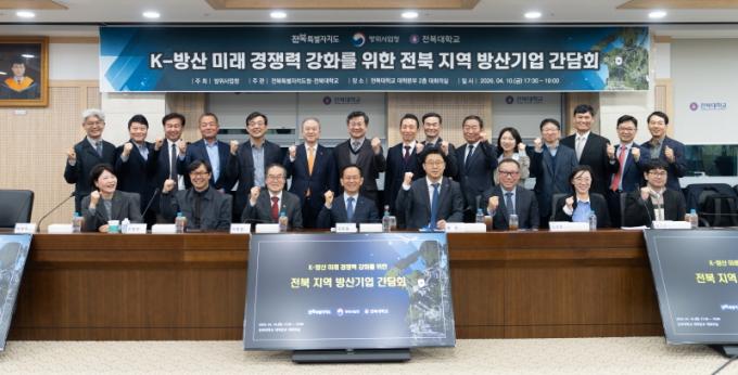 À̳¯ °£´ãȸ¿¡´Â ¹æÀ§»ç¾÷ûÀå, ÀüºÏ´ëÇб³ ÃÑÀåÀ» ºñ·ÔÇÏ¿© ÀüºÏÀÚÄ¡µµ, ÀüºÏÅ×Å©³ëÆÄÅ© µî À¯°ü±â°ü ÁÖ¿ä °ü°èÀÚµéÀÌ Âü¼®ÇßÀ¸¸ç, ¶ÇÇÑ ÀüºÏÀÚÄ¡µµ ¼ÒÀç ¹æ»ê Áß¼Ò±â¾÷ ´ëÇ¥µé°ú À̵éÀÇ ÁÖ¿ä Çù·Â»çÀÎ Çѱ¹Ç×°ø¿ìÁÖ»ê¾÷, Çö´ë·ÎÅÛ, ÇÑÈ¿¡¾î·Î½ºÆäÀ̽ºÀÇ ÀÓ¿øÁøÀÌ ÀÚ¸®¸¦ ÇÔ²²Çß´Ù.