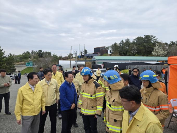 ±è ¿¹ºñÈ帴 À̳¯ ÇöÀå¿¡¼­ °ü°èÀڵ鿡°Ô »óȲ º¸°í¸¦ ¹Þ°í, Å« ¾ÈŸ±î¿òÀ» Ç¥Çß´Ù. ±×´Â "°¡Àå À§ÇèÇÑ ÇöÀå¿¡¼­ ±¹¹ÎÀÇ »ý¸í°ú ¾ÈÀüÀ» Áö۱â À§ÇØ ³¡±îÁö ÃÖ¼±À» ´ÙÇϼ̴ø µÎ ºÐÀÇ ¿ë±â¿Í Çå½Å¿¡ ¸Ó¸® ¼÷¿© °æÀǸ¦ Ç¥ÇÑ´Ù¡±°í ¸»Çß´Ù. ¡°µ¿·á ´ë¿øµé²²µµ À§·Î¿Í °Ý·ÁÀÇ ¸»À» ÀüÇÑ´Ù¡±°í Çß´Ù.