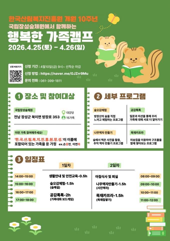 ÁÖ¿ä ÇÁ·Î±×·¥À¸·Î´Â ¡ãÈ£³² ¸í»ê ¹æÀå»ê ½£±æÀ» ½£Çؼ³»ç¿Í °È´Â ¡®½£¿À°¨Ã¼Ç衯 ¡ãÁú¹®°ú ¹Ì¼ÇÀ» ÅëÇØ °¡Á·¿¡ ´ëÇØ ¼·Î ´õ ¾Ë¾Æº¸´Â ¡®°ø°¨ÅåÅ塯 ¡ã½£¿¡¼ ÂïÀº »çÁøÀ» Á÷Á¢ ²Ù¸çº¸´Â ¡®³ª¹«¾×ÀÚ ¸¸µé±â¡¯ ¡ã¸ñÀç Ĩ(Ä«ÇÁ¶ó) ±¸Á¶¹° ¸¸µé±â·Î °¡Á· °£ Çùµ¿À» µ½´Â ¡®¸ñÀçÄ«ÇÁ¶ó¡¯·Î ±¸¼ºµÈ´Ù.