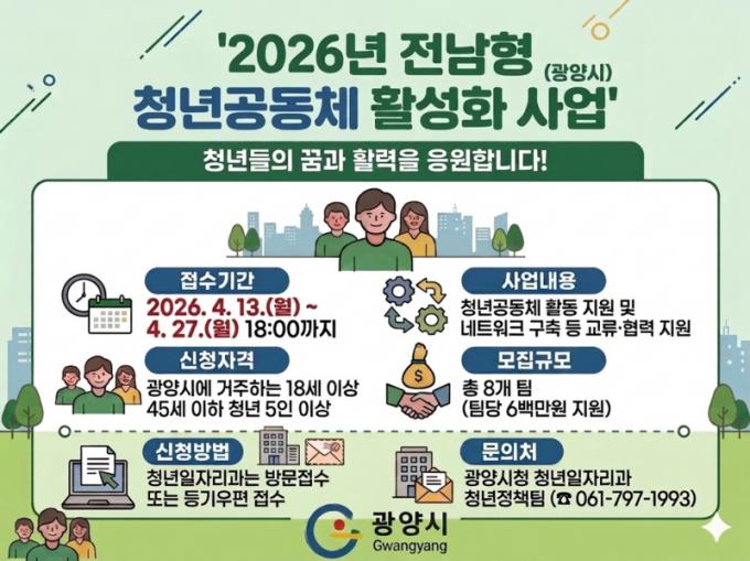 ½Åû ´ë»óÀº 18¼¼ºÎÅÍ 45¼¼±îÁöÀÇ Ã»³â 5ÀÎ ÀÌ»óÀ¸·Î ±¸¼ºµÈ °øµ¿Ã¼·Î, ±¸¼º¿øÀÇ 60% ÀÌ»óÀÌ ±¤¾ç½Ã¿¡ °ÅÁÖÇØ¾ß ÇÑ´Ù. ¼±Á¤µÈ °øµ¿Ã¼´Â 6¿ùºÎÅÍ 11¿ù±îÁö Áö¿ª ±â¹Ý Ȱµ¿À» ÃßÁøÇÑ´Ù.