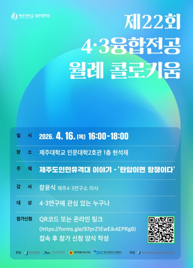 À̹ø Çà»ç¿¡¼´Â ÀåÀ±½Ä Á¦ÁÖ4¡¤3¿¬±¸¼Ò À̻縦 ÃÊÃ»ÇØ ¡®Á¦ÁÖµµÀιÎÀ¯°Ý´ë À̾߱⡯¸¦ ÁÖÁ¦·Î °¿¬À» ÁøÇàÇÑ´Ù. »çȸ´Â ±èµ¿À± ±¹¾î±¹¹®Çаú ±³¼ö°¡ ¸Ã´Â´Ù.