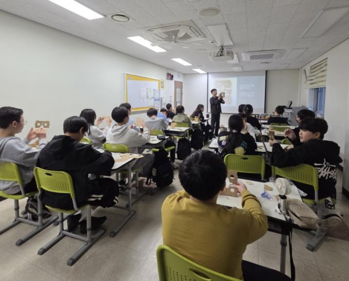Áö³ 6ÀÏ¿¡´Â Àüü Áßµî û¼Ò³âÀ» ´ë»óÀ¸·Î ¡¸VR¡¤AR Áø·Î 縰Áö¡¹¸¦ ¿î¿µÇß´Ù. Âü°¡ û¼Ò³âµéÀº °¡»óÇö½Ç(VR)°ú Áõ°Çö½Ç(AR) ±â¼úÀ» Á÷Á¢ üÇèÇÏ¸ç °ü·Ã ºÐ¾ßÀÇ Á÷¾÷ ¼¼°è¸¦ Ž»öÇÏ´Â ½Ã°£À» °¡Á³´Ù.