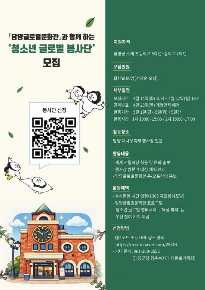 ¸ðÁý ´ë»óÀº ´ã¾ç±º ¼ÒÀç ÃʵîÇб³ 5ÇгâºÎÅÍ ÁßÇб³ 2Çг⿡ ÀçÇÐ ÁßÀΠû¼Ò³âÀ¸·Î, ÃàÁ¦ ±â°£ÀÎ 5¿ù 1ÀϺÎÅÍ 5ÀϱîÁö 5Àϰ£ ¸ÅÀÏ ¿ÀÈÄ 1½ÃºÎÅÍ 5½Ã±îÁö 2½Ã°£¾¿ Á¶¸¦ ³ª´² ¿î¿µÇÒ ¿¹Á¤ÀÌ´Ù.