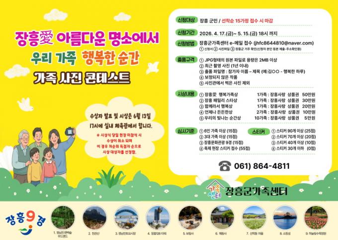 À̹ø ÄÜÅ×½ºÆ®´Â ¡®ÀåÈïäñ ¾Æ¸§´Ù¿î ¸í¼Ò¿¡¼ ¿ì¸® °¡Á· ÇູÇÑ ¼ø°£¡¯À̶ó´Â ÁÖÁ¦·Î, °¡Á· °£ÀÇ ÈÇÕ°ú Ãß¾ïÀ» »çÁøÀ¸·Î ³²±â°í Áö¿ª °ü±¤ÀÚ¿øÀÇ ¸Å·ÂÀ» ³Î¸® ¾Ë¸®±â À§ÇØ ¸¶·ÃµÆ´Ù.