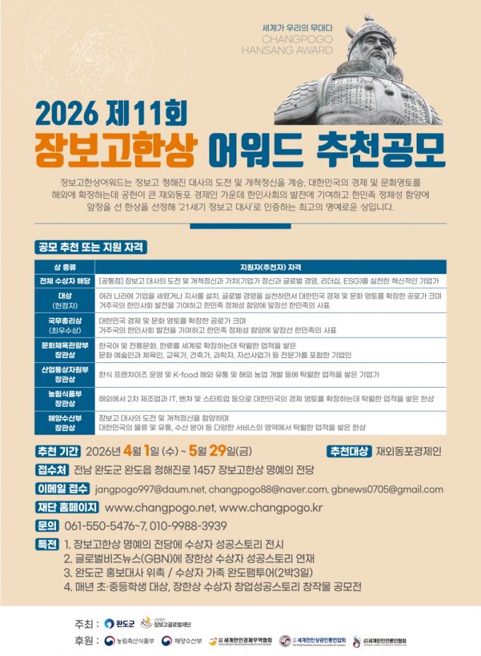 Ãßõ ±â°£Àº 5¿ù 29ÀϱîÁö´Ù. ÃßõÀº À庸°í±Û·Î¹úÀç´Ü, À庸°íÇÑ»ó ¸í¿¹ÀÇ Àü´ç ´©¸®Áý, ±Û·Î¹ú ºñÁî´º½º(www.gbnews.kr)¿¡¼ ¡®À庸°í ÇÑ»ó ¾î¿öµå¡¯ Èĺ¸ÀÚ Ãßõ¼¸¦ ³»·Á¹Þ¾Æ ÀÛ¼ºÇÑ µÚ À̸ÞÀÏ(jangpogo12@naver.com)·Î ÇÏ¸é µÈ´Ù.
