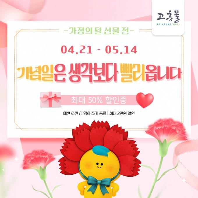 [È£³²µµ¹Î½Å¹® = ÀÓÀ±Áø ±âÀÚ] °íÈﱺ(±º¼ö °ø¿µ¹Î)ÀÌ ¿î¿µÇÏ´Â ¿Â¶óÀÎ ¼îÇθô ¡®°íÈï¸ô¡¯Àº 4¿ù 21ÀϺÎÅÍ 5¿ù 14ÀϱîÁö ¡®°¡Á¤ÀÇ ´Þ ¼±¹°Àü¡¯À» ¿­°í, Àα⠳ó¼öƯ»ê¹°°ú ¼±¹° ¼¼Æ®¸¦ ÃÖ´ë 50% ÇÒÀÎµÈ °¡°Ý¿¡ ¼±º¸ÀÎ´Ù°í ¹àÇû´Ù.