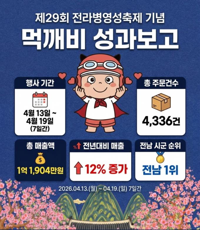 °­Áø±ºÀº Áö³­ 13ÀϺÎÅÍ 19ÀϱîÁö ÁøÇàµÈ º´¿µ¼ºÃàÁ¦ ±â³ä ¸Ô±úºñ ÇÒÀÎÀ̺¥Æ®¸¦ ÅëÇØ ÃÑ ÁÖ¹® °Ç¼ö 4,336°Ç, ÃѸÅÃâ¾× 1¾ï 1,904¸¸ ¿øÀ» ±â·ÏÇÏ¸ç ¼º°øÀûÀÎ ¼ºÀûÇ¥¸¦ ¹Þ¾Æµé¾ú´Ù°í ¹àÇû´Ù.