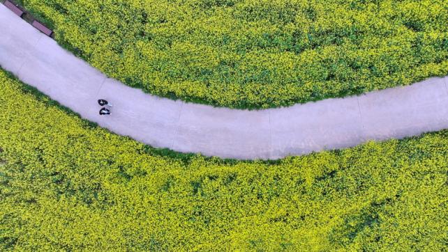 Æ÷±ÙÇÑ º½¹Ù¶÷ÀÌ ½ºÄ¡´Â °ø¿ø ³» »êÃ¥·Î ÁÖº¯¿¡´Â À¯Ã¤²É¹çÀÌ ¸¶Ä¡ ³ë¶õ À¶´ÜÀ» ±ò¾Æ³õÀº µí È»çÇÑ Àå°üÀ» ¿¬ÃâÇϰí ÀÖ´Ù.
