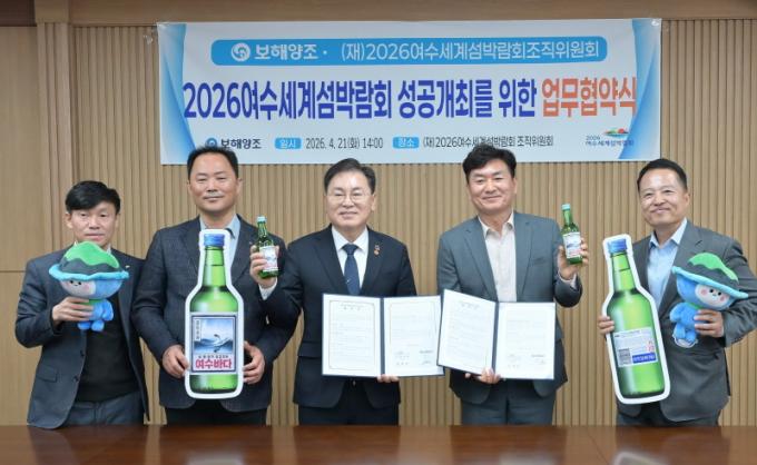 À̹ø Çù¾à¿¡ µû¶ó º¸ÇؾçÁ¶´Â Áö¿ª ´ëÇ¥ ¼ÒÁÖ ¡®¿©¼ö¹Ù´Ù¡¯ Á¦Ç°¿¡ ¹Ú¶÷ȸ È«º¸ ¶óº§À» ºÎÂøÇØ 5¿ù Áß¼øºÎÅÍ ÆÇ¸Å¸¦ ½ÃÀÛÇϸç, ¿©¼ö Áö¿ª ³» ¾à 50¸¸ º´À» À¯ÅëÇÒ °èȹÀÌ´Ù.