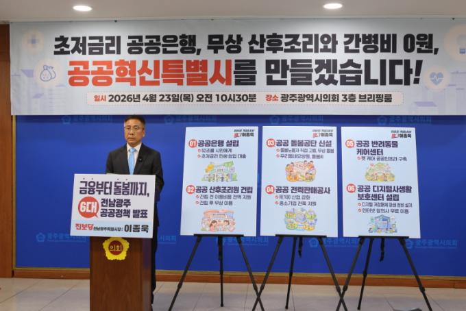 [È£³²µµ¹Î½Å¹® = ÀÓÀ±Áø ±âÀÚ] ÀÌÁ¾¿í Áøº¸´ç Àü³²±¤ÁÖÆ¯º°½ÃÀå Èĺ¸(¹ÎÁÖ³ëÃÑ ±¤ÁÖº»ºÎÀå)°¡ 23ÀÏ ±âÀÚȸ°ßÀ» ¿­°í °ø°øÀºÇà ¼³¸³°ú ÃÊÀú±Ý¸® ¹Î»ý ´ëÃâ, »êÈÄÁ¶¸® ºñ¿ë°ú °£º´ºñ Àü¾× Áö¿ø, °ø°ø ¹Ý·Áµ¿¹° ÄɾÅÍ µî °ø°øºÎ¹® 6´ë °ø¾àÀ» ¹ßÇ¥Çß´Ù.