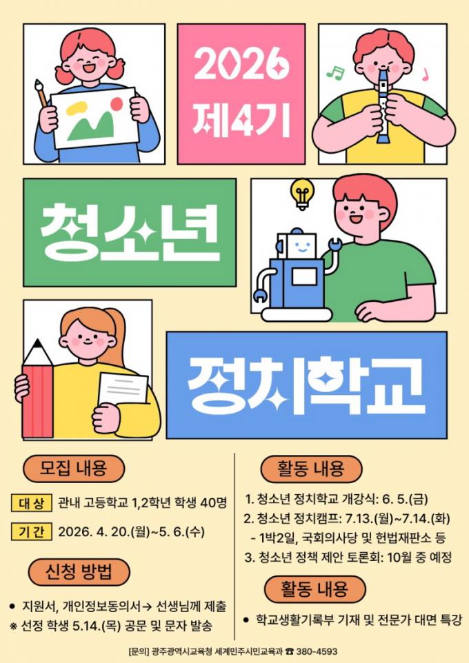 ¶ÇÇÑ, ±¤Áֽñ³À°Ã»Àº Áö³ 22ÀÏ ±¤Áַּθó·ÎÆÄÅ©¿¡¼ ÃÊ‧Áßµî ¹× Æ¯¼öÇб³ ±³¿ø 30¿© ¸íÀ» ´ë»óÀ¸·Î ¡®2026 ±³¿ø Á¤Ä¡Âü¿©±³À° ¿ª·® °È Á÷¹«¿¬¼ö¡¯¸¦ ½Ç½ÃÇß´Ù.