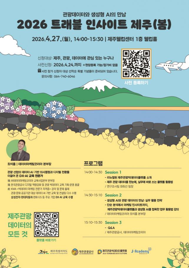 À̹ø ¼¼¹Ì³ª¿¡¼± »õ·Ó°Ô °³ÆíÇÑ Á¦ÁÖ°ü±¤ ºòµ¥ÀÌÅÍ Ç÷§Æû(data.ijto.or.kr)ÀÇ È°¿ë ¹æ¾ÈÀ» ¼Ò°³Çϰí, »ý¼ºÇü ÀΰøÁö´É(AI)°ú °ü±¤µ¥ÀÌÅ͸¦ °áÇÕÇÑ ½Ç¹« Ȱ¿ë Àü·«À» °øÀ¯ÇÑ´Ù.