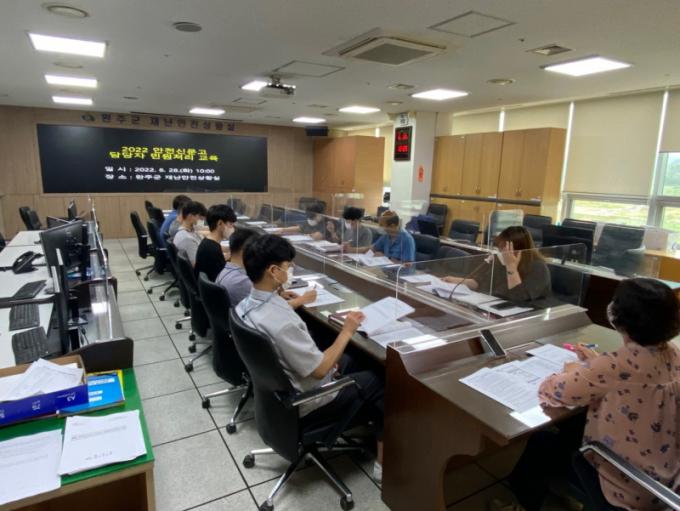 28ÀÏ ¿ÏÁÖ±ºÀº ½Ç°ú¼Ò ¹× À¾¸é ¾ÈÀü½Å¹®°í Àü´ã°ø¹«¿øÀ» ´ë»óÀ¸·Î ¾ÈÀü½Å¹®°í ¹Î¿øÃ³¸® °³¼± ±³À°À» ½Ç½ÃÇß´Ù. À̳¯ ±³À°Àº ¾ÈÀü½Å¹®°í ½Å°í´ë»ó À¯Çü ¹× ¹Î¿øÃ³¸® ½Ã 󸮱Ⱓ Áؼö, 󸮹æ¹ý µî ¾ÈÀü½Å¹®°í Á¢¼ö¿¡ µû¸¥ ¾÷¹«Ã³¸® °³¼±À» À§ÇÑ °ÍÀ¸·Î Çö ¾÷¹«Ã³¸® ´ã´çÁ÷¿ø 39¸íÀ» ´ë»óÀ¸·Î ÁøÇàµÆ´Ù.