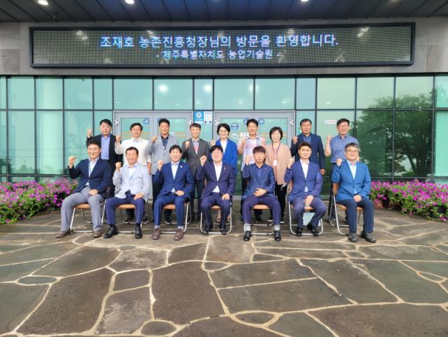 Á¦ÁÖµµ ³ó¾÷±â¼ú¿ø(¿øÀå ÇãÁ¾¹Î)Àº 28ÀÏ ³ó¾÷±â¼ú¿ø³» ȸÀǽǿ¡¼ Á¦ÁÖ¸¦ ¹æ¹®ÇÑ Á¶ÀçÈ£ ³óÃÌÁøÈïûÀå¿¡°Ô µµ³» ³ó¾÷¡¤³óÃÌÀÇ ÇöÀå Àǰ߰ú ¿¬±¸¡¤±â¼úº¸±Þ»ç¾÷ ÇٽɰúÁ¦ µî ³óÃÌÁøÈï»ç¾÷ ÃßÁøÇöȲÀ» º¸°íÇß´Ù.ÀÌÈÄ Á¶ÀçÈ£ ³óÃÌÁøÈïûÀåÀº Á¦Áֽà ¿À¶óÀ̵¿ÀÇ Á¦ÁÖ»ê Àâ°î ¼öÃâÇöÀå ¡®¿À¶ó(³ó¾÷ȸ»ç¹ýÀÎ, ´ëÇ¥ ¹®¼º¿í)¡¯¸¦ ¹æ¹®ÇØ ³ó¾÷Àεé°ú ´ëÈÀÇ ½Ã°£À» °¡Á³´Ù.