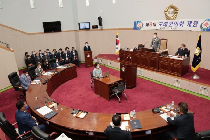 À¯½Ã¹® ÀÇ¿øÀº ³× Ç¥¸¦ ¾ò¾î ÀÇÀåÀ¸·Î, ±è¼öö ÀÇ¿øÀº ³× Ç¥¸¦ ¾ò¾î ºÎÀÇÀåÀ¸·Î ¼±ÃâµÆ´Ù. ¿ÀÈÄ¿¡´Â °³¿ø ±â³äÇà»ç°¡ ±è¼øÈ£ ±¸·Ê±º¼ö, Àç°æ±¸·Ê±º Çâ¿ìȸ(ȸÀå ±è±¤ÅÂ) ÀÓ¿øÁø, À¾¡¤¸é ÀÌÀå´ÜÀå µî ³»¿Ü ±ÍºóÀÌ Âü¼®ÇÑ °¡¿îµ¥ ÁøÇàµÇ¾ú´Ù.