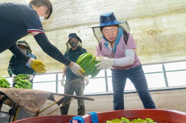 ¿À¿µÈÆ Áö»ç´Â ¡°ÁöÀÚü¿Í ³óÇùÀÌ ÈûÀ» ¸ð¾Æ ¹Ù³ª³ª ․ »þÀθӽºÄÏ µî ½Å¼ÒµæÀÛ¸ñ °³¹ß»ç¾÷¿¡ ¼º°ú¸¦ ³»¾ß 1Â÷»ê¾÷ÀÌ ´õ Å©°Ô ¼ºÀåÇÒ °Í¡±À̶ó¸ç ¡°¾ÕÀ¸·Îµµ ½Å¼ÒµæÀÛ¸ñ °³¹ßÀÌ ¿øÈ°ÇÏ°Ô ÀÌ·ïÁöµµ·Ï Àû±Ø µÞ¹Þħ Çϰڴ١±°í °Á¶Çß´Ù. ÀÌ¾î ¡°³ó°¡ÀÇ ¿ä±¸¿Í ÇÊ¿ä»çÇ×À» ¼ö½Ã·Î °æÃ»ÇØ Á¦ÁÖµµÀÇ »õ·Î¿î ³ó¾÷Á¤Ã¥¿¡ ¹Ý¿µÇÏ´Â ÀÏ¿¡ ÃÖ¼±À» ´ÙÇϰڴ١±°í ¸»Çß´Ù. ³ó¾÷Àϼյ½±â¿¡ ¾Õ¼ ÁøÇàµÈ ±è³ç³óÇù Á÷¿øµé°úÀÇ °£´ãȸ¿¡¼´Â ³ó¾÷ ¹ßÀüÀ» À§ÇÑ ´Ù¾çÇÑ ÀǰßÀÌ Á¦½ÃµÆ´Ù.
