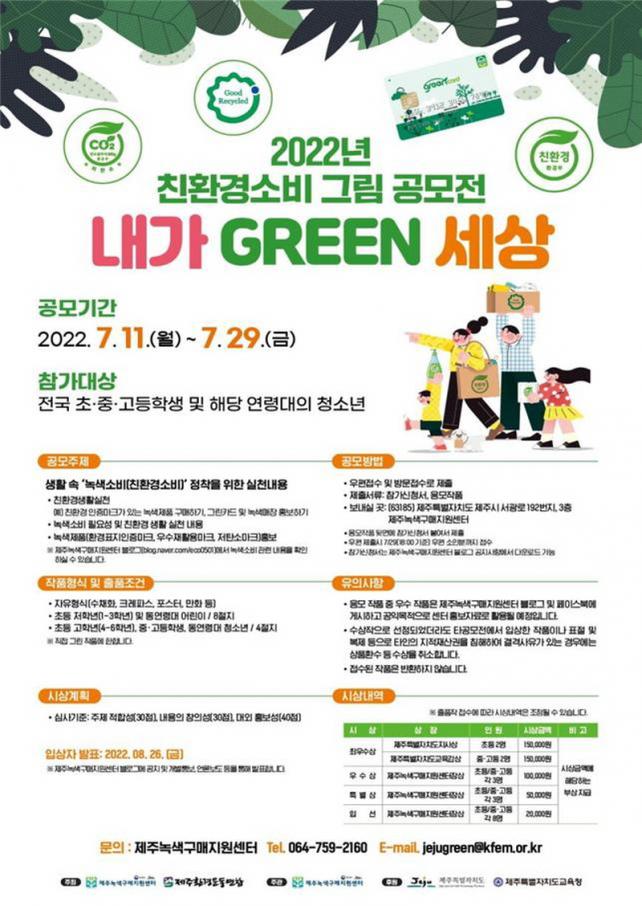 °ø¸ðÀÛÀº ³ì»ö¼Òºñ Á¤ÂøÀ» À§ÇÑ »ýȰ ¼Ó ½Çõ³»¿ë, ³ì»öÁ¦Ç° È«º¸ µî ±âŸ ³ì»ö¼Òºñ¿Í °ü·ÃµÈ ³»¿ëÀ» ÀÚÀ¯·Î¿î Çü½ÄÀ¸·Î Ç¥ÇöÇÏ¸é µÈ´Ù. ¼ö»óÀÚ¿¡°Ô´Â »óÀå°ú ºÎ»óÀÌ Áö±ÞµÇ¸ç, ¼ö»óÀÛǰÀº ÇâÈÄ Á¦ÁÖ³ì»ö±¸¸ÅÁö¿ø¼¾ÅÍÀÇ ³ì»ö¼Òºñ ±³À° ¹× È«º¸ÀÚ·á·Î Ȱ¿ëµÈ´Ù.