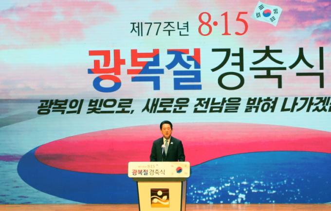 Äڷγª19 6Â÷ ´ëÀ¯Çà »óȲÀ» °¨¾ÈÇØ Çà»çÀå¿¡´Â ±è¿µ·Ï Àü³²µµÁö»ç¸¦ ºñ·ÔÇØ ¾Ö±¹Áö»ç¿Í À¯°¡Á·, º¸ÈÆ´Üü ¹× ÁÖ¿ä ±â°ü․´Üü ´ëÇ¥ µî 200¿© ¸í¸¸ÀÌ Âü¼®Çß´Ù. °æÃà½ÄÀº ¡®±¤º¹ÀÇ ºûÀ¸·Î, »õ·Î¿î Àü³²À» ¹àÇô ³ª°¡°Ú½À´Ï´Ù¡¯¶ó´Â ÁÖÁ¦·Î, µ¶¸³À¯°øÀÚ Æ÷»ó, °æÃà»ç, °æÃà°ø¿¬, ±¤º¹Àý ³ë·¡ Á¦Ã¢, ¸¸¼¼»ïâ µîÀÌ ÁøÇàµÆ´Ù.