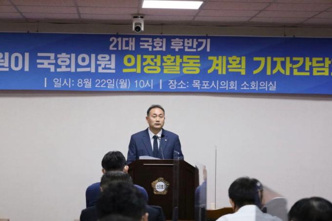 ±è ÀÇ¿øÀº 22ÀÏ ¿ÀÀü 10½Ã, ¸ñÆ÷½ÃÀÇȸ ¼ÒȸÀǽǿ¡¼ ¡°21´ë ±¹È¸ ÈĹݱâ ÀÇÁ¤È°µ¿ °èȹ ±âÀÚ°£´ãȸ¡±¸¦ °³ÃÖÇß´Ù. ±è¿øÀÌ ÀÇ¿øÀº µ¶°¨¹é½ÅÁ¢Á¾, ÀÔ´ç¿ø¼ À¯Ãâ, ¼ºÆøÇà 2Â÷ °¡ÇØ ¹®Á¦¿¡ ´ëÇØ ÀÚ½ÅÀÇ ¼Òȸ¸¦ ¹àÈ÷´Â °ÍÀ¸·Î ±âÀÚȸ°ßÀ» ½ÃÀÛÇß´Ù.