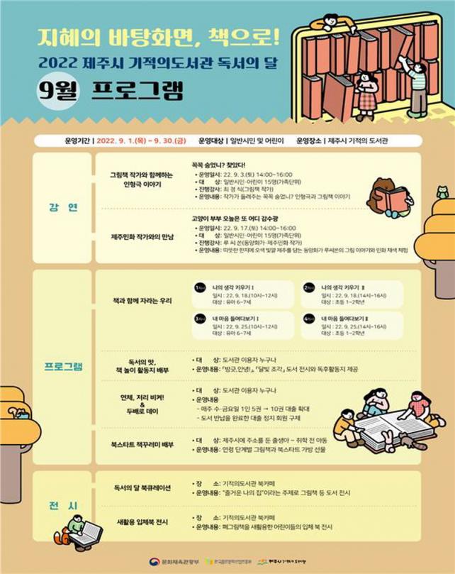 9¿ù 18ÀÏ(ÀÏ)°ú 9¿ù 25ÀÏ(ÀÏ)¿¡´Â ¡°Ã¥°ú ÇÔ²² ÀÚ¶ó´Â ¿ì¸®¡±¶ó´Â ÁÖÁ¦·Î Ã¥°ú Ä£ÇØÁö´Â °æÇè°ú »ç°í È®Àå·ÂÀ» Ű¿ì´Â Ã¥ ³îÀÌ ÇÁ·Î±×·¥ÀÌ À¯¾Æ 6~7¼¼¿Í Ãʵî 1~2ÇгâÀ» ´ë»óÀ¸·Î ¿î¿µµÈ´Ù.