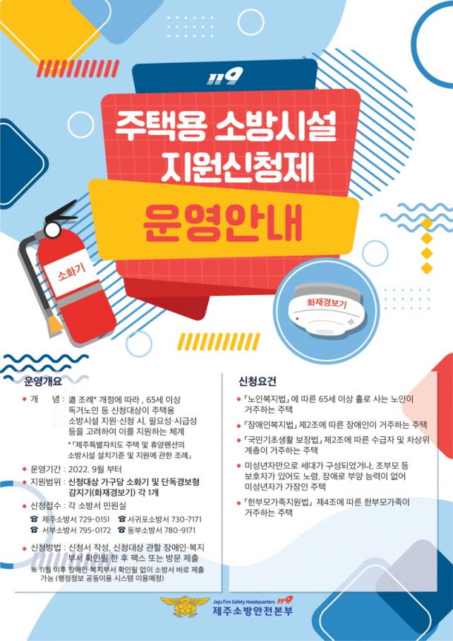 Á¦ÁÖ¼Ò¹æ¾ÈÀüº»ºÎ´Â ÁÖÅÃ¿ë ¼Ò¹æ½Ã¼³ Áö¿ø ½ÅûÁ¦ÀÇ ¿øÈ°ÇÑ ¿î¿µÀ» À§ÇØ 1,000 °¡±¸¿¡ ¼³Ä¡ÇÒ ¼ö ÀÖ´Â ¼ö·®À» È®º¸ÇßÀ¸¸ç, ¿ÃÇØ ¾ÈÀ¸·Î ÀÇ¿ë¼Ò¹æ´ë¿Í Çù¾÷À» ÅëÇØ ½Åû ´ë»ó ¼¼´ë¿¡ Á÷Á¢ ÁÖÅÿë¼Ò¹æ½Ã¼³ ¼³Ä¡¸¦ Áö¿øÇÒ ¹æÄ§ÀÌ´Ù.