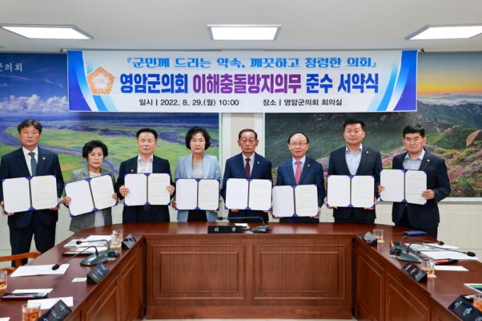 À̳¯, ¼¾à½Ä¿¡¼´Â °Âù¿ø ÀÇÀåÀ» ºñ·ÔÇÑ 8¸í ÀÇ¿øÀÌ Àü¿ø Âü¼®ÇÏ¿© Áö³ 5¿ù 19ÀÏ ½ÃÇàµÇ°í Àִ¡®°øÁ÷ÀÚÀÇ ÀÌÇØÃæµ¹¹æÁö¹ý¡¯ÀÇ ÁÖ¿ä Àǹ«»çÇ׿¡ ´ëÇØ öÀúÇÑ Áؼö¸¦ ´ÙÁüÇϴ¡®ÀÌÇØÃæµ¹¹æÁöÀǹ« Áؼö ¼¾à¼¡¯¿¡ ¼¸íÇß´Ù.