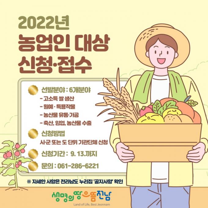 Àü³²¿¡¼ ³ó¾÷À» ¿µÀ§ÇÏ´Â »ç¾÷ÀåÀÌ Àְųª ³ó¾÷¿¡ Á÷Á¢ Á¾»çÇÏ´Â »ç¶÷À¸·Î ³ó¾÷ ¹ßÀü¿¡ ±â¿©ÇÑ °øÀÌ ÇöÀúÇÑ ³ó¾÷ÀÎÀ̳ª »ý»êÀÚ ´Üü°¡ ½ÅûÇÒ ¼ö ÀÖ´Ù. ¿µ³ó °æ¿µ»óȲ µîÀ» Æ÷ÇÔÇÑ ½Åû¼·ù¸¦ ÁغñÇØ ½Ã±ºÀ̳ª µµ ´ÜÀ§ ±â°ü´Üü¿¡ ½ÅûÇÏ¸é µÈ´Ù.