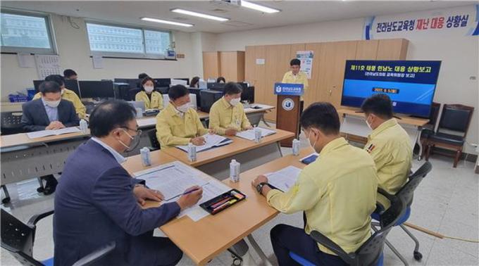 Á¶ À§¿øÀåÀº ±³À°Ã» °ü°èÀڷκÎÅÍ ÅÂdz Áø·Î¿¡ µû¸¥ ´Ü°èº° Á¶Ä¡»çÇ×°ú ´ëÀÀ°èȹÀ» º¸°í¹Þ°í ¡°ÅÂdzÀ¸·Î ÀÎÇÑ Àθí°ú ±³À° ½Ã¼³¹° ÇÇÇØ ¿¹¹æ¿¡ ÃÖ¼±À» ´ÙÇØ ÁÙ °Í¡±À» ´çºÎÇß´Ù.